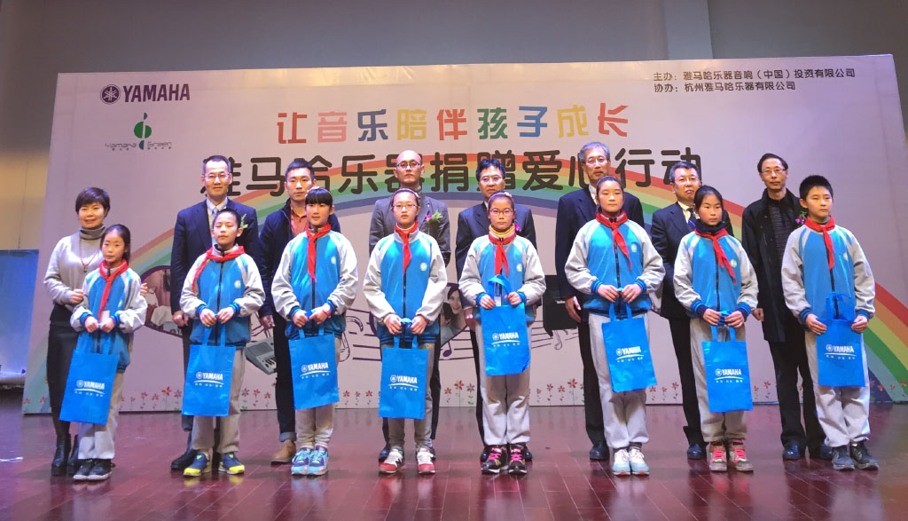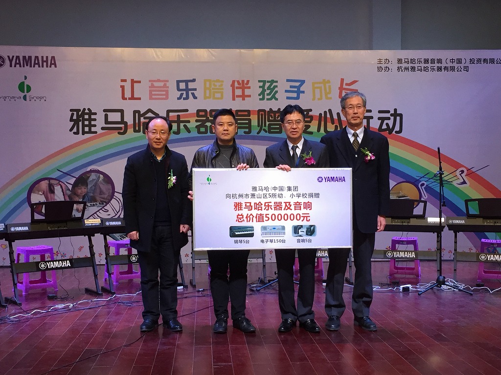 2015年12月23日,雅馬哈中國繼去年12月之后,再次在杭州蕭山舉行了對5所當地貧困小學的樂器捐贈以及演奏會活動,這項樂器捐贈活動為期5年,此次活動已經是第三個年頭。