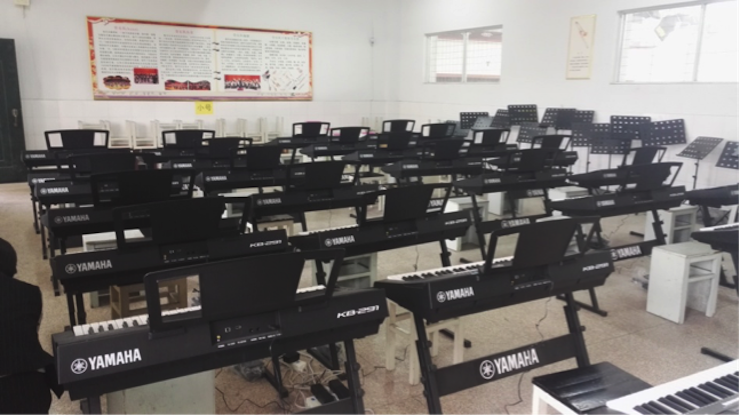 寬敞的教室中擺放著嶄新的雅馬哈電子琴