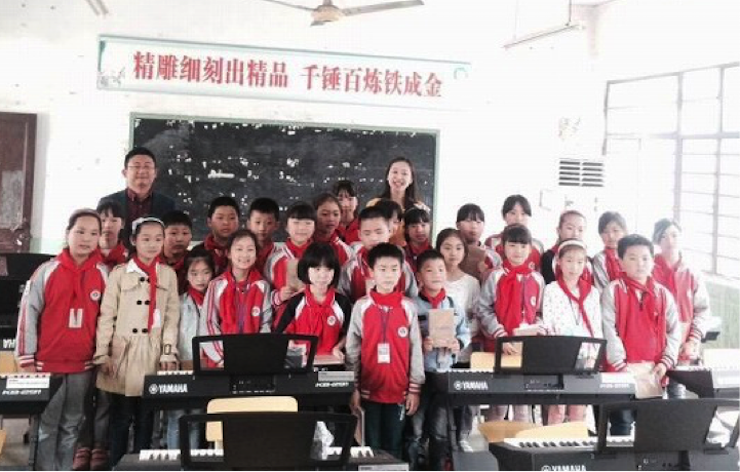 小小的教室雖然簡陋但承載著同學們對音樂夢想的渴望,而回蕩著歡笑的歌聲是此次雅馬哈愛心音樂會活動的肯定。