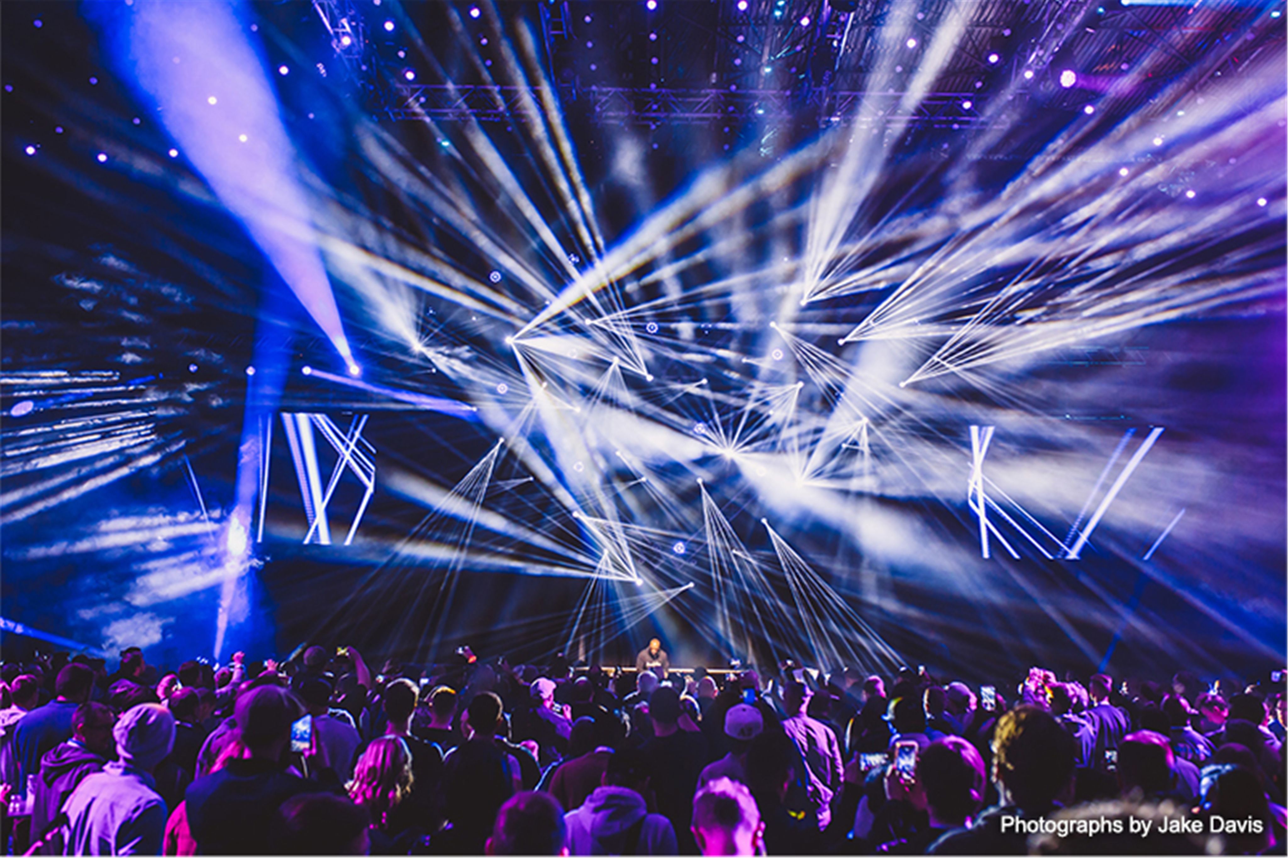 他繼續說道,“此外,我們還播放了常規的Chauvet Light Show——展示了場地贊助商的產品——接著播放我自己的背景音樂,該聲音來自Dante虛擬聲卡。”