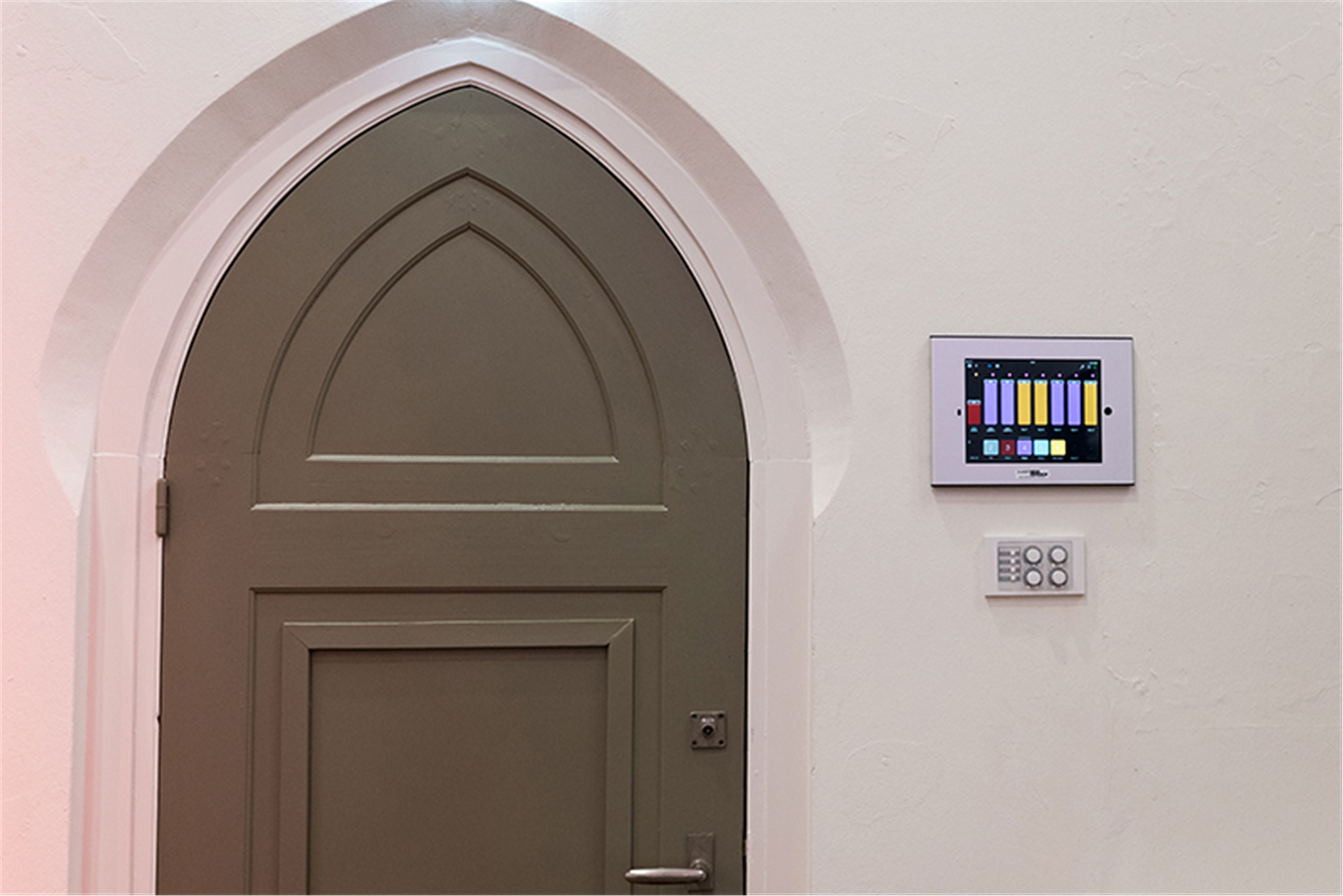 教堂房間用于演講和音樂活動,也兼作圖書館使用。在這一區(qū)域,PX10、PX8和PX5功率放大器和另一臺MTX3以及ProVisionaire Touch負(fù)責(zé)供電和系統(tǒng)控制,系統(tǒng)中還包含1臺TF1數(shù)字調(diào)音臺和Tio1608-D輸入/輸出單元。