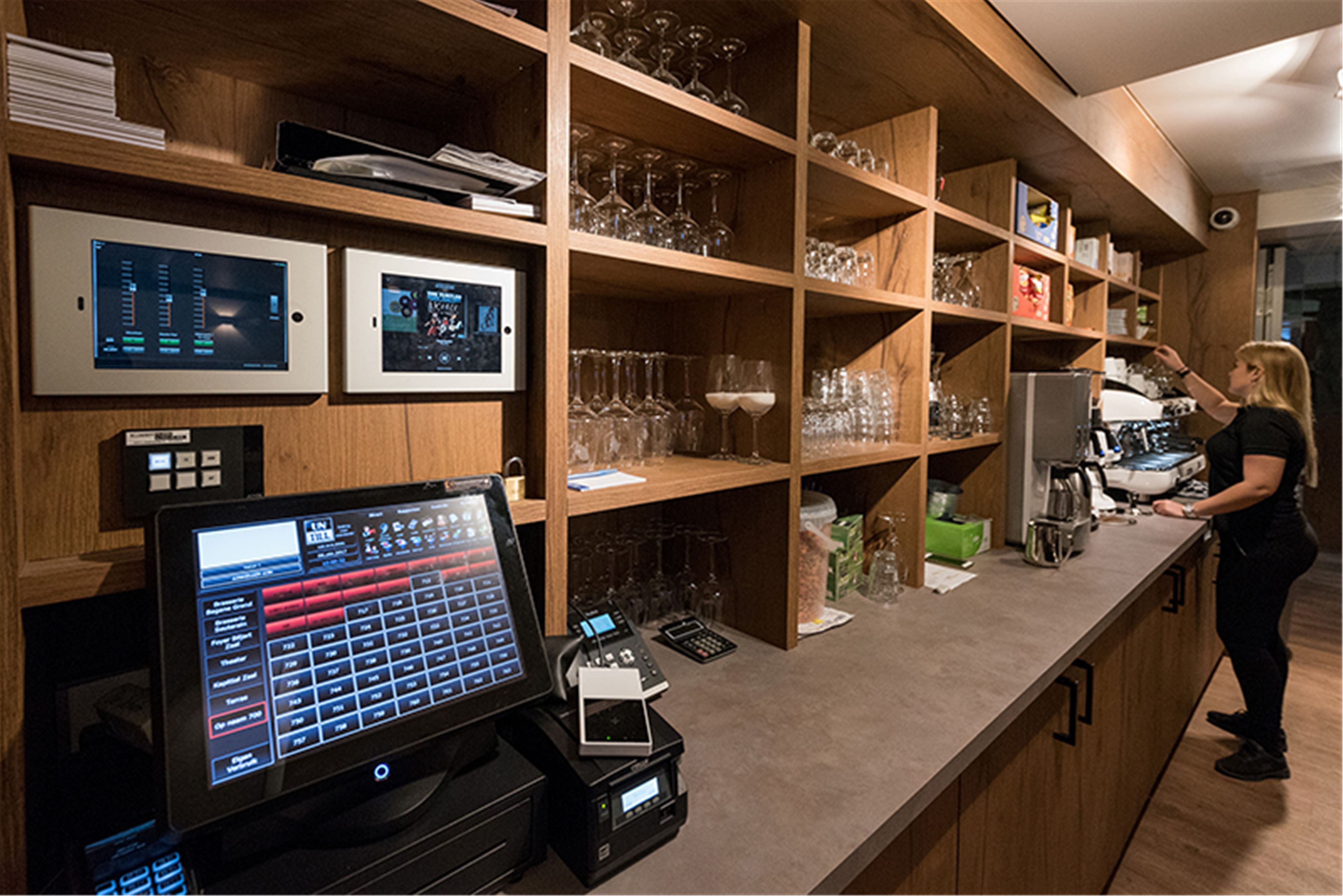 位于2樓的餐廳采用12個VXS5W、9個VXS3FW和1個VXC4W音箱覆蓋六個區(qū)域(酒吧、休息室/走廊、餐廳的每一層、露臺和衛(wèi)生間),另1臺XMV8280、MTX3和Provisionaire Touch用于供電和控制。