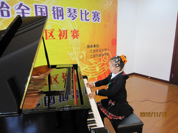 11月18日,江陰賽區江陰祥和琴行在琴園演奏廳圓滿的完成了鋼琴比賽,由琴行總經理顧國祥組織,負責內容包括宣傳、報名、后勤、外聯、安全等工作。賽事吸引了市內多個培訓中心、鄉鎮藝術培訓中心及部分周邊(靖江、常州)愛好者前來報名參賽。家長感到比賽很有檔次、比較規范公正,孩子能獲得比賽的獎項,感到很有榮譽感。希望雅馬哈公司以后還能多舉辦類似這樣的活動。