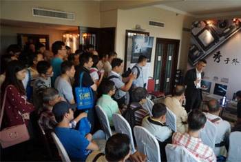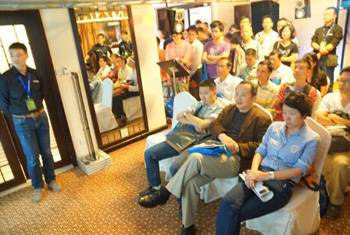 | 試聽會現場擠滿了熱情的參觀者 | AV營業部華南組組長陳超介紹雅馬哈HiFi產品 |