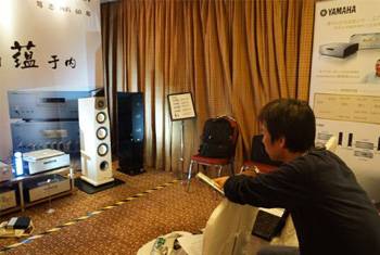 | 雅馬哈HiFi產品現場展示 | 前垣宏親先生認真調試聲音 |