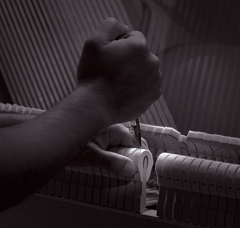 在整音的過程中,根據每臺鋼琴的特性,每件弦槌都經過雅馬哈技師的匠心調校,為琴聲注入生命力,將彈奏者所追求的聲音表現得淋漓盡致。