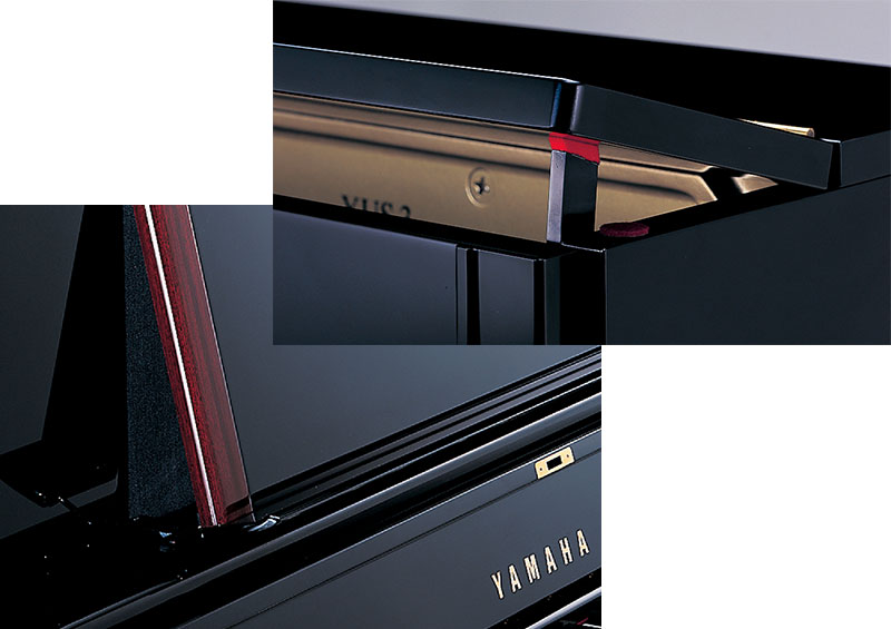 考慮到使用者的安全,采用緩降鍵盤蓋系統。鍵盤蓋的旋轉五金軸安裝于鍵盤蓋內側,實現了優美的桁架設計。黑色鏡面的“YUS1”和“YUS3”,在放置樂譜的譜架臺上部使用人工皮革,給外觀增添高級感的同時,也使得樂譜不易滑動。