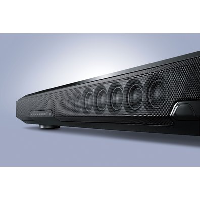SRT-1000的大容量箱體使用了確保良好音質(zhì)的理想材料MDF,中央配置一組8個(gè)揚(yáng)聲器,兩邊各有1個(gè)橢圓形低音單元,共同產(chǎn)生雅馬哈獨(dú)有數(shù)字投音機(jī)聲束。其環(huán)繞聲真實(shí)廣闊,底部表面配備兩個(gè)重低音單元,再現(xiàn)飽滿的低音,中間的左右聲道可獨(dú)立輸出,前置聲道可低頻輸出。在大屏幕電視前享受卓越的聲源定位和強(qiáng)勁的聲音效果吧!