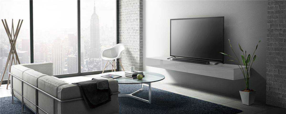 不論是放置在電視柜上,還是掛墻式安裝,YAS-105 都能提供完美的安裝解決方案。53mm 的高度絕不會阻礙你欣賞節目的視野,而當它掛墻安裝時也會非常美觀。YAS-105 僅通過單根電纜與電視連接,因此安裝相當簡單快捷。