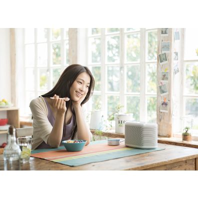 音箱設計簡單利落,輕松搭配各種風格,而且尺寸小巧,非常適合在廚房、床邊等場合使用。 甚至還可安裝在墻上。只需輕按觸感式按鈕,即可打開音箱,為您開啟體驗WX-030 無線音箱的樂趣。