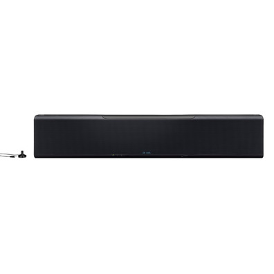 前面板和指示燈區域采用網格覆蓋,外觀簡約雅致。兩端網罩與上面板弧形相接,巧妙地修飾周圍的支撐件。指示燈區域僅在需要時點亮,避免干擾視線。即使安裝了專門的垂直音束揚聲器,整個設備寬度僅為1100mm(比前代型號YSP-5100 窄100mm),深度僅為93mm(不含支座),整體結構為纖薄。