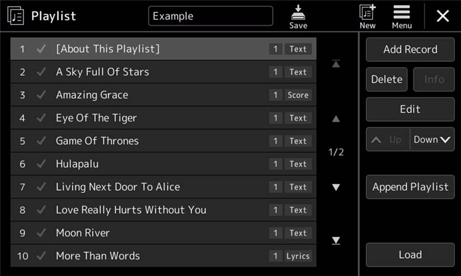 | 樂曲 | 樂譜顯示功能 | 有 | |