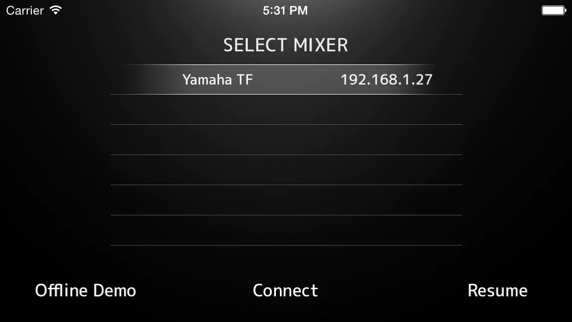 MonitorMix 軟件可以用于無線連接 RIVAGE PM / CL / QL / TF 調音臺,通過該軟件用戶可以實現 MIX / MATRIX / AUX 混音,多達10臺 iOS / Android 設備可以同時在線操作。